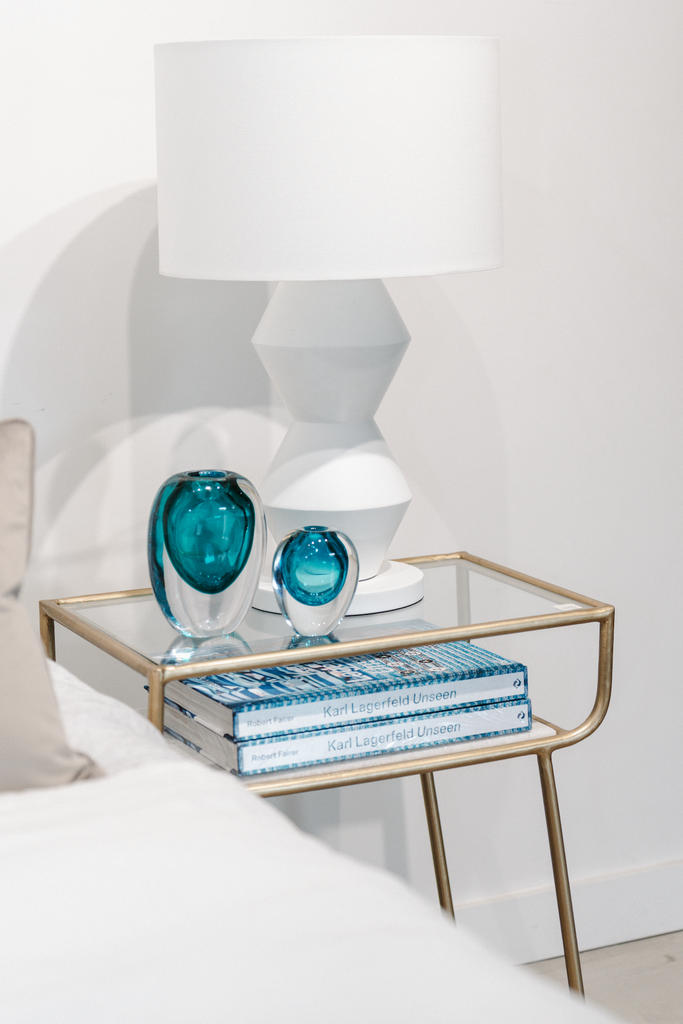 The bold lines of our Tamsin Table Lamp create a dramatically stunning silhouette. The contemporary matte finish adorns the resin lamp base and plays on the sharp design of the form. Topped with a white linen drum shade.