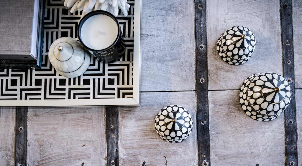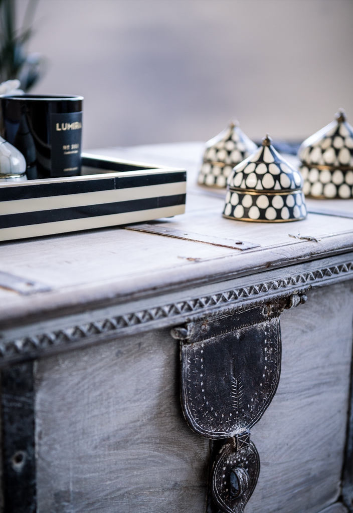 This beautiful Inlay canister is handmade in India and lined with antiqued brass. Use this for storing your special trinkets or just for display.