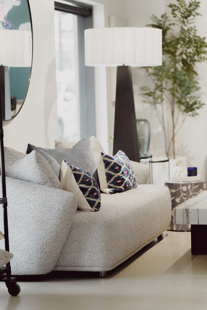 Our gorgeous Fuji Floor Lamp has a geometric tapered column base in black metal, the white parchment shade has a beautiful scallop detail and creates a striking combination of strong & delicate. The dimmer feature means you can use as a reading lamp or create an ambient glow, filtered through parchment - stunning!