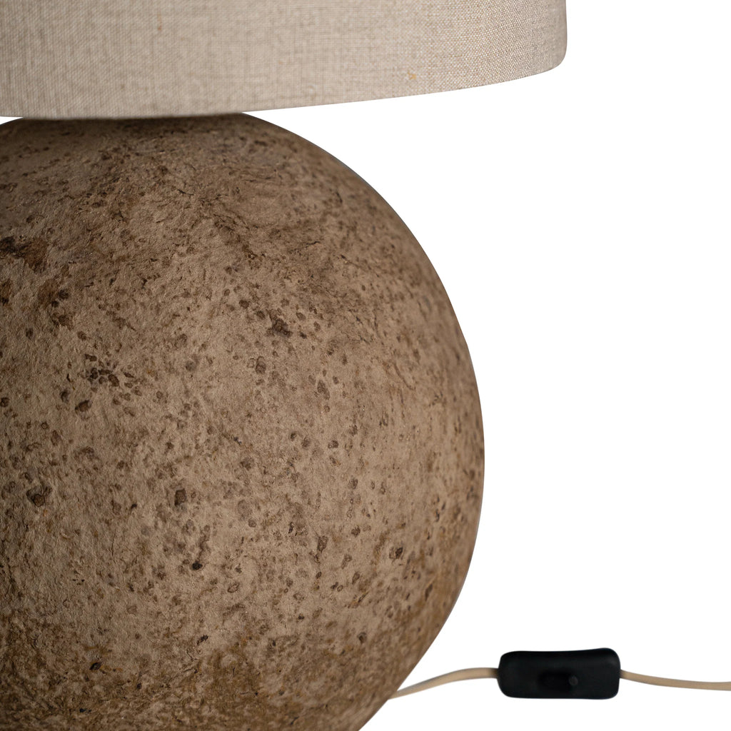 Crafted from eco-friendly papier-mâché base with a linen shade. It includes a rope-like electric fitting, adding a touch of organic elegance to any setting.