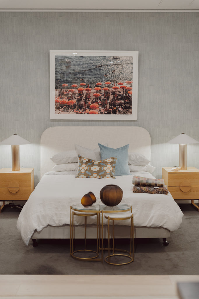 The Brooklyn Table lamp is a timeless statement piece. With a simplistic design, dark bronze base & white metal peaked shade with a bronze cap, this modernist table lamp blends effortlessly with minimalistic spaces, showcasing its contemporary feel. Focusing on clean & simple form, the Brooklyn Lamp delivers on every level. Black textile cord, length 150 cm with line on/off switch. Uses 2 x E27 MAX 28W globes (globes not included).